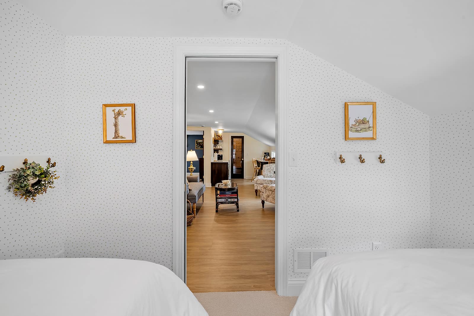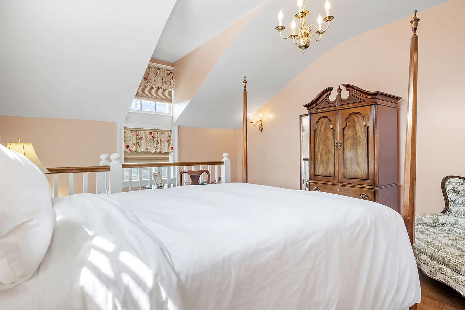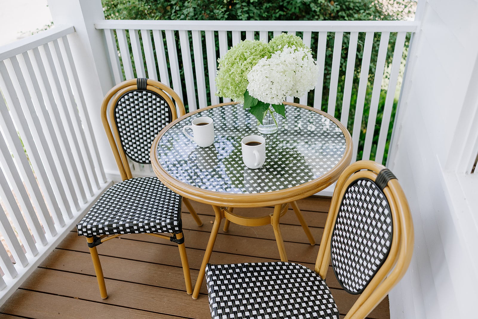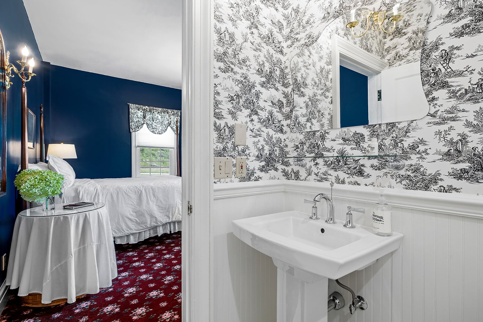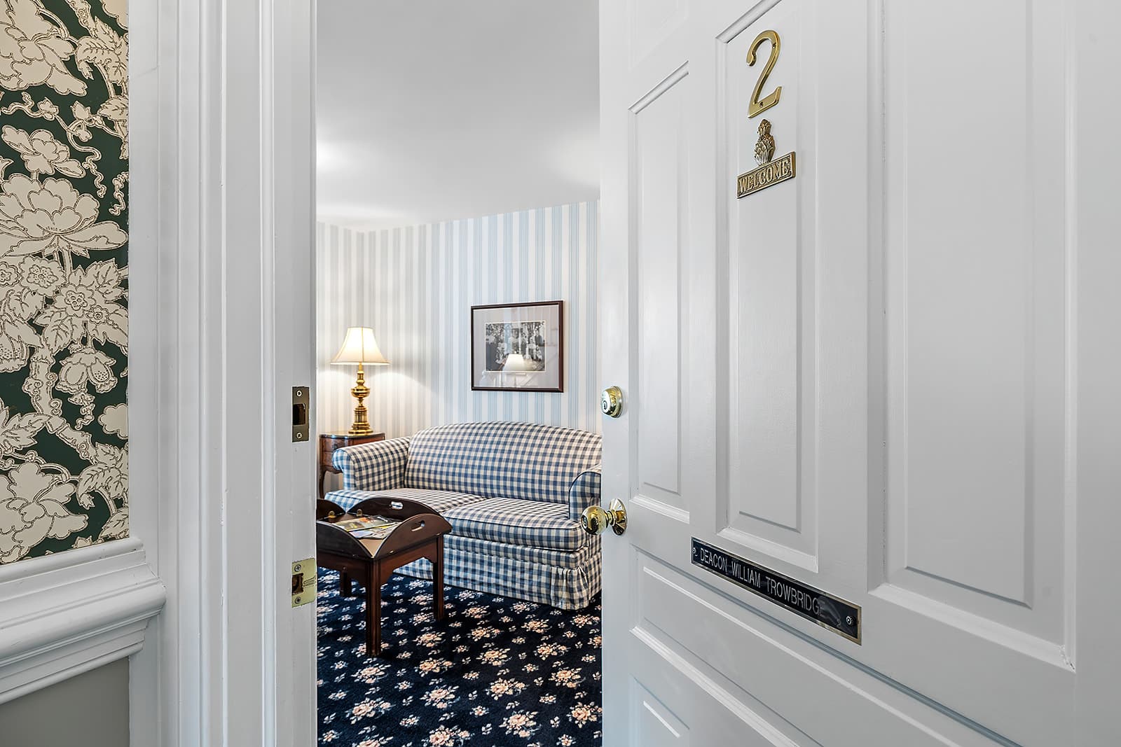 The Rochester Inn offers five luxury suites and one classic guest room, including four expansive two-story suites featuring first-floor sitting areas, wet bars, whirlpool tubs, and premium in-room amenities consistent with upscale boutique lodging standards. Common guest areas include a breakfast and sitting room adjacent to the commercial kitchen, while an exterior courtyard provides seasonal dining and social space. Six dedicated parking spaces transfer with the property.