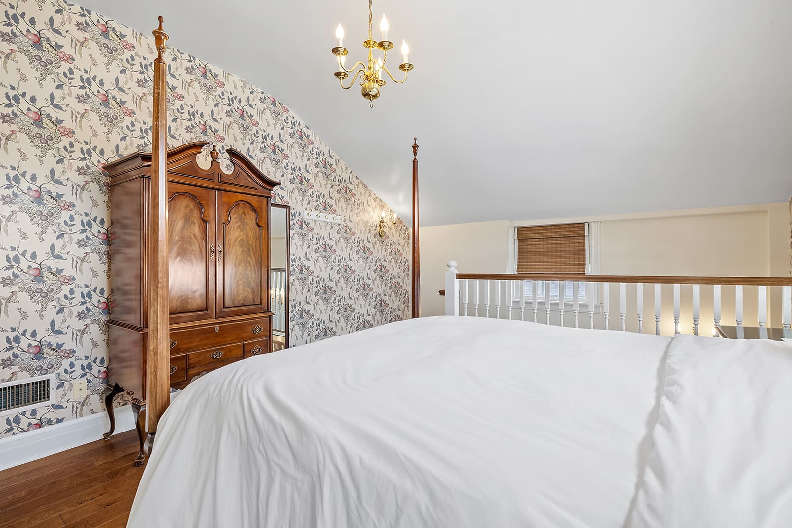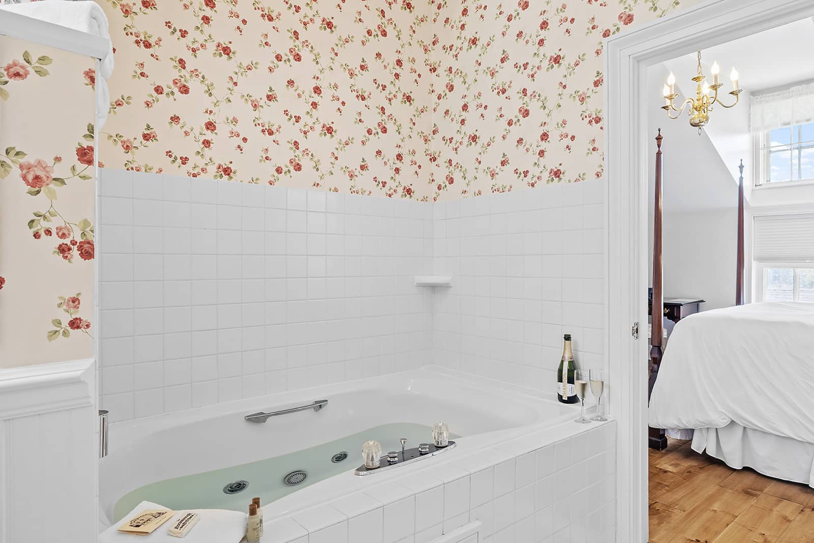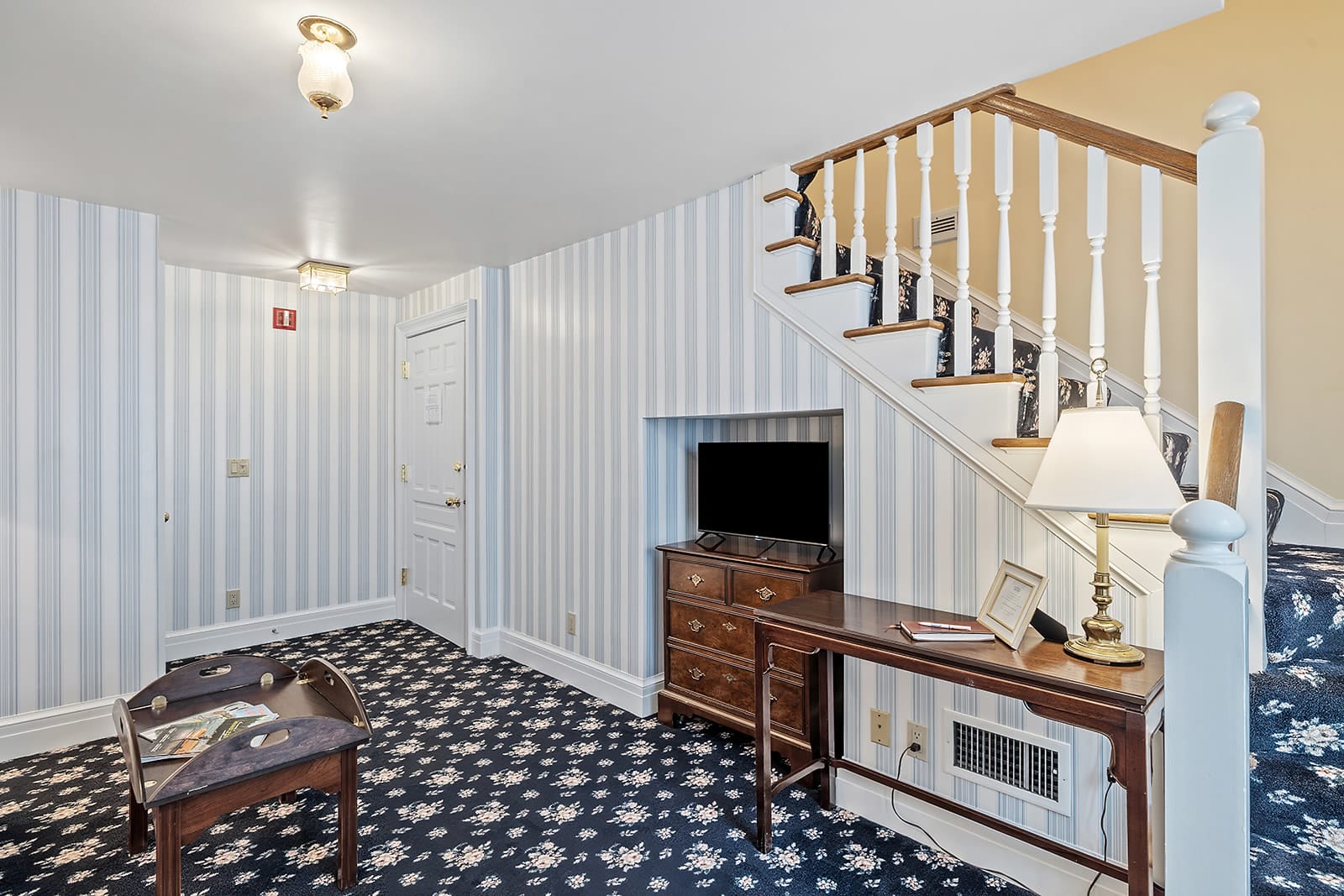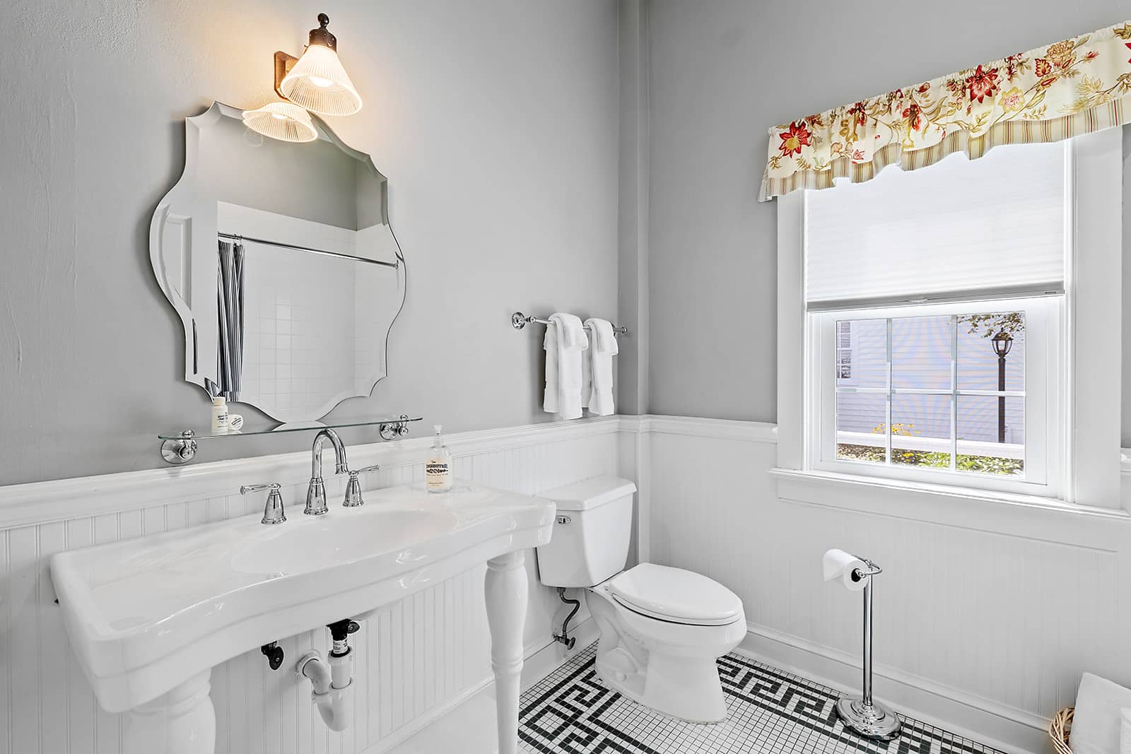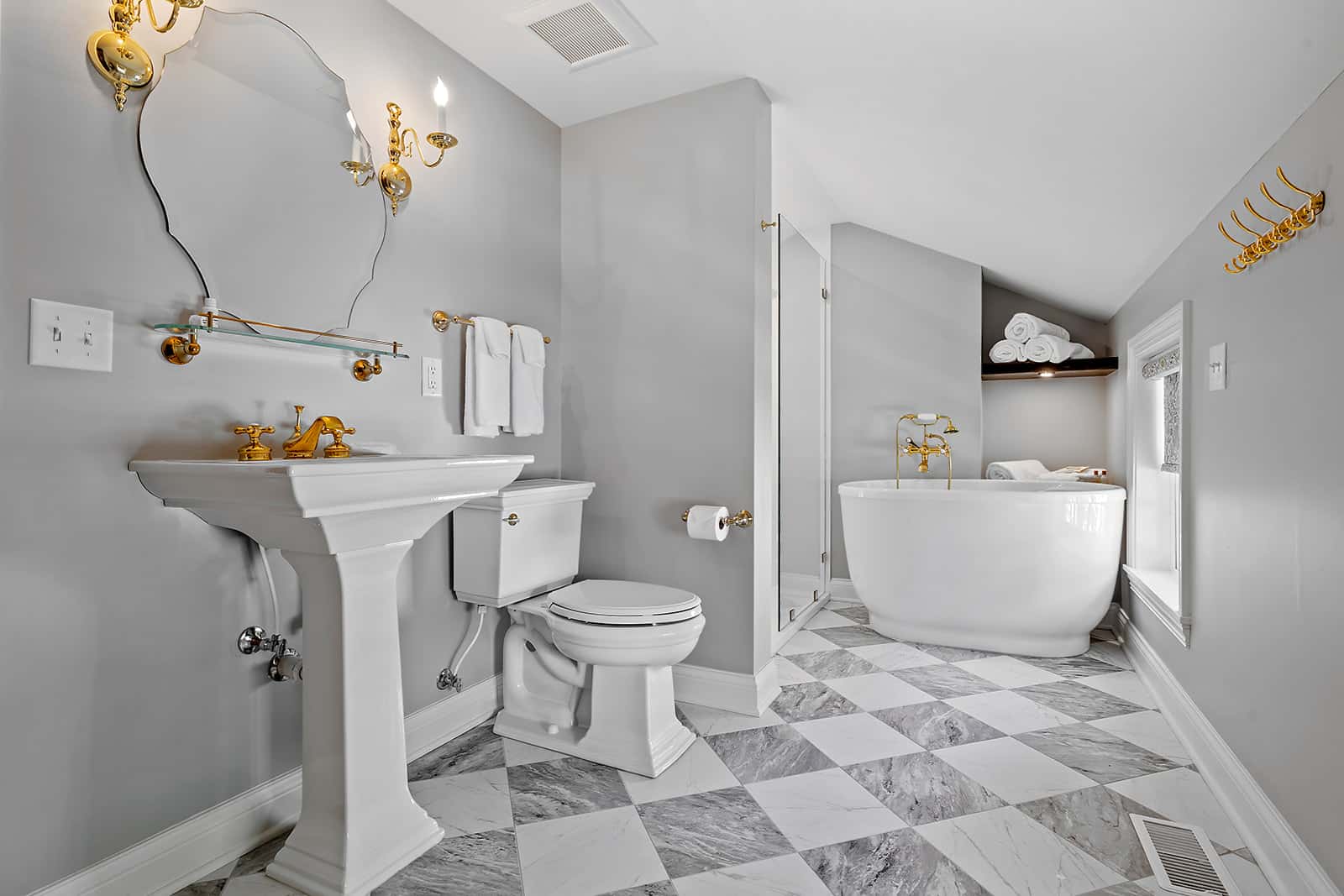 The Rochester Inn offers five luxury suites and one classic guest room, including four expansive two-story suites featuring first-floor sitting areas, wet bars, whirlpool tubs, and premium in-room amenities consistent with upscale boutique lodging standards. Common guest areas include a breakfast and sitting room adjacent to the commercial kitchen, while an exterior courtyard provides seasonal dining and social space. Six dedicated parking spaces transfer with the property.