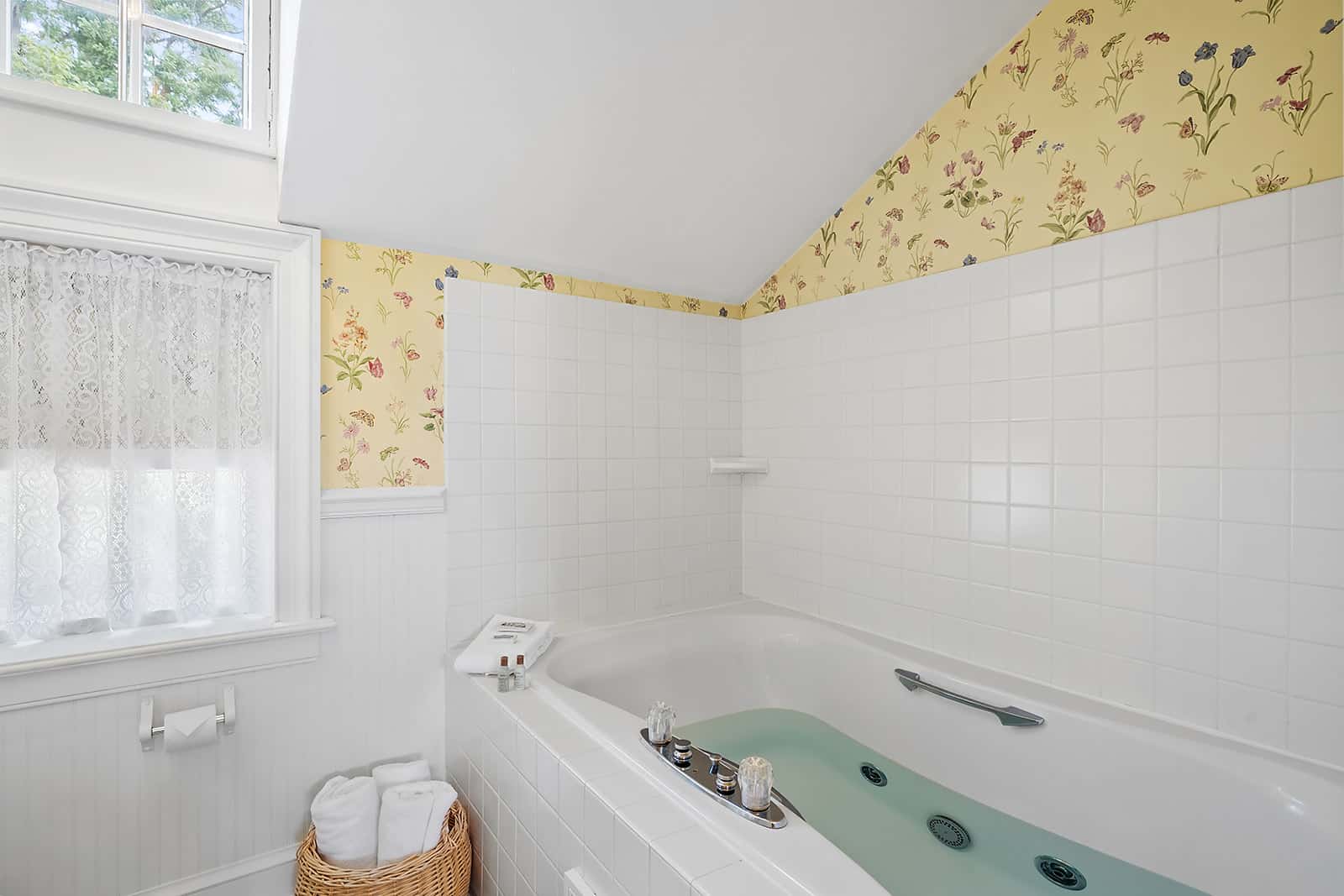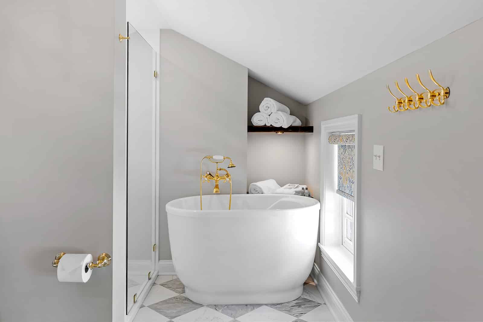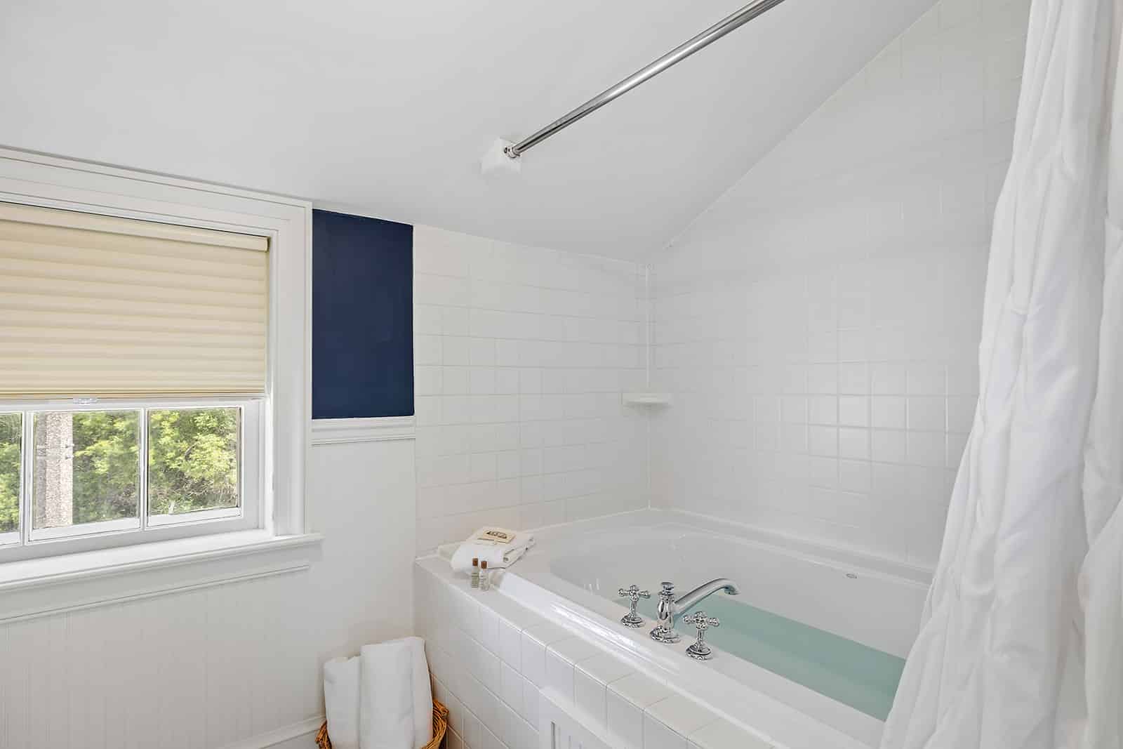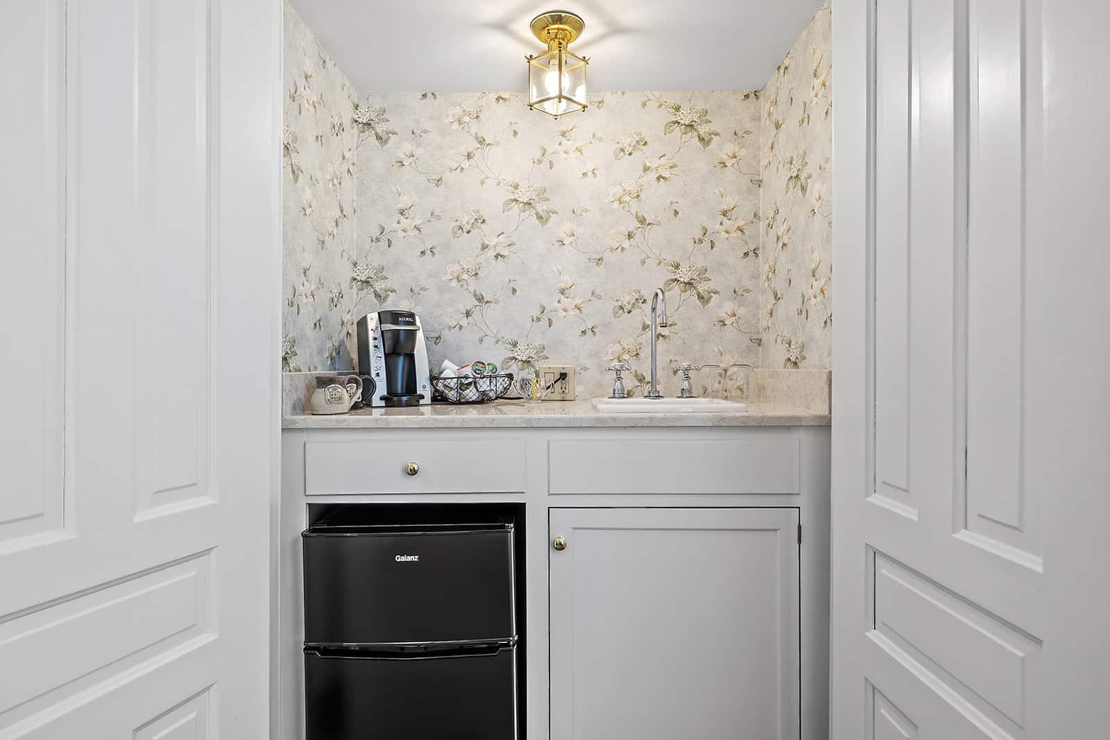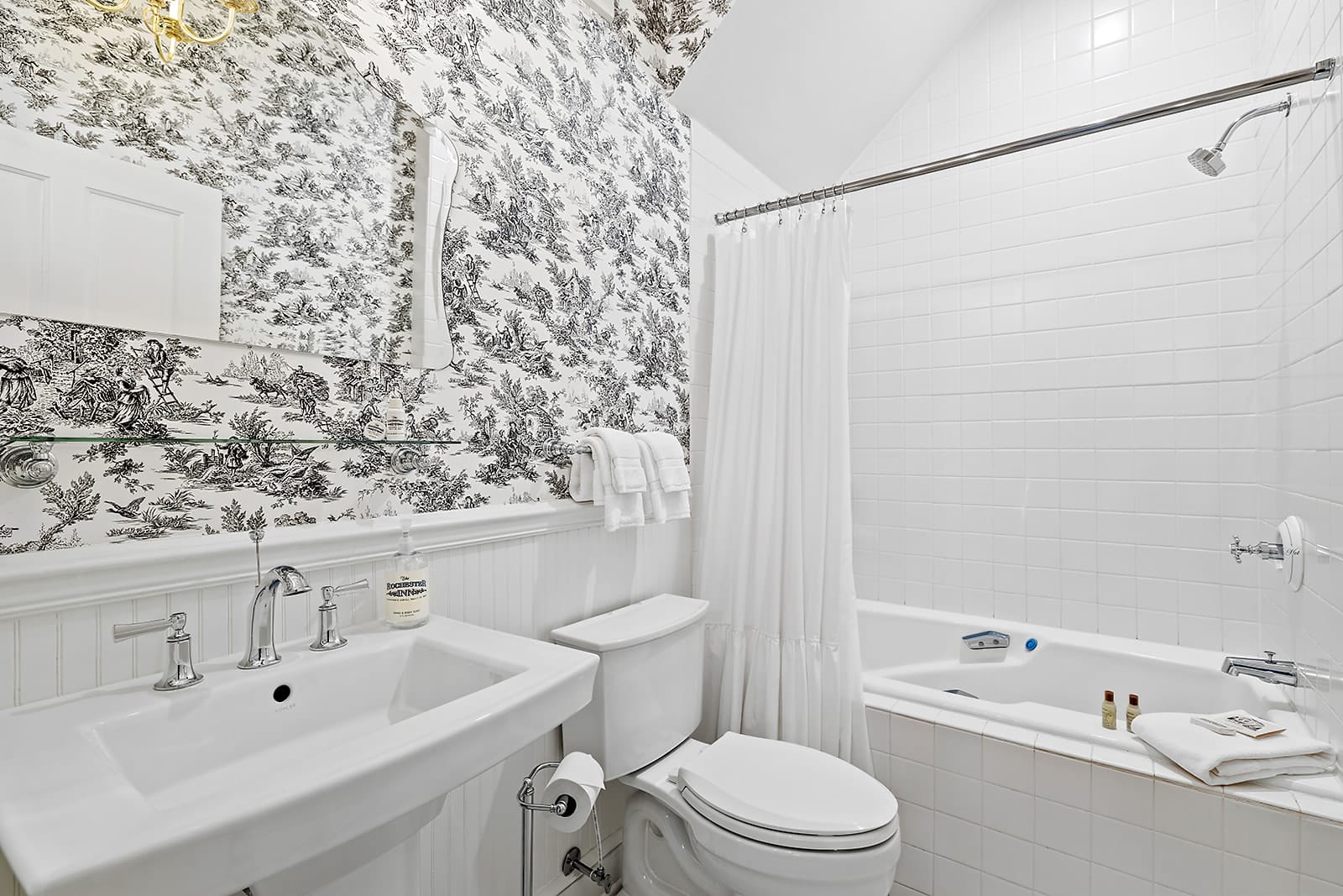 The Rochester Inn offers five luxury suites and one classic guest room, including four expansive two-story suites featuring first-floor sitting areas, wet bars, whirlpool tubs, and premium in-room amenities consistent with upscale boutique lodging standards. Common guest areas include a breakfast and sitting room adjacent to the commercial kitchen, while an exterior courtyard provides seasonal dining and social space. Six dedicated parking spaces transfer with the property.